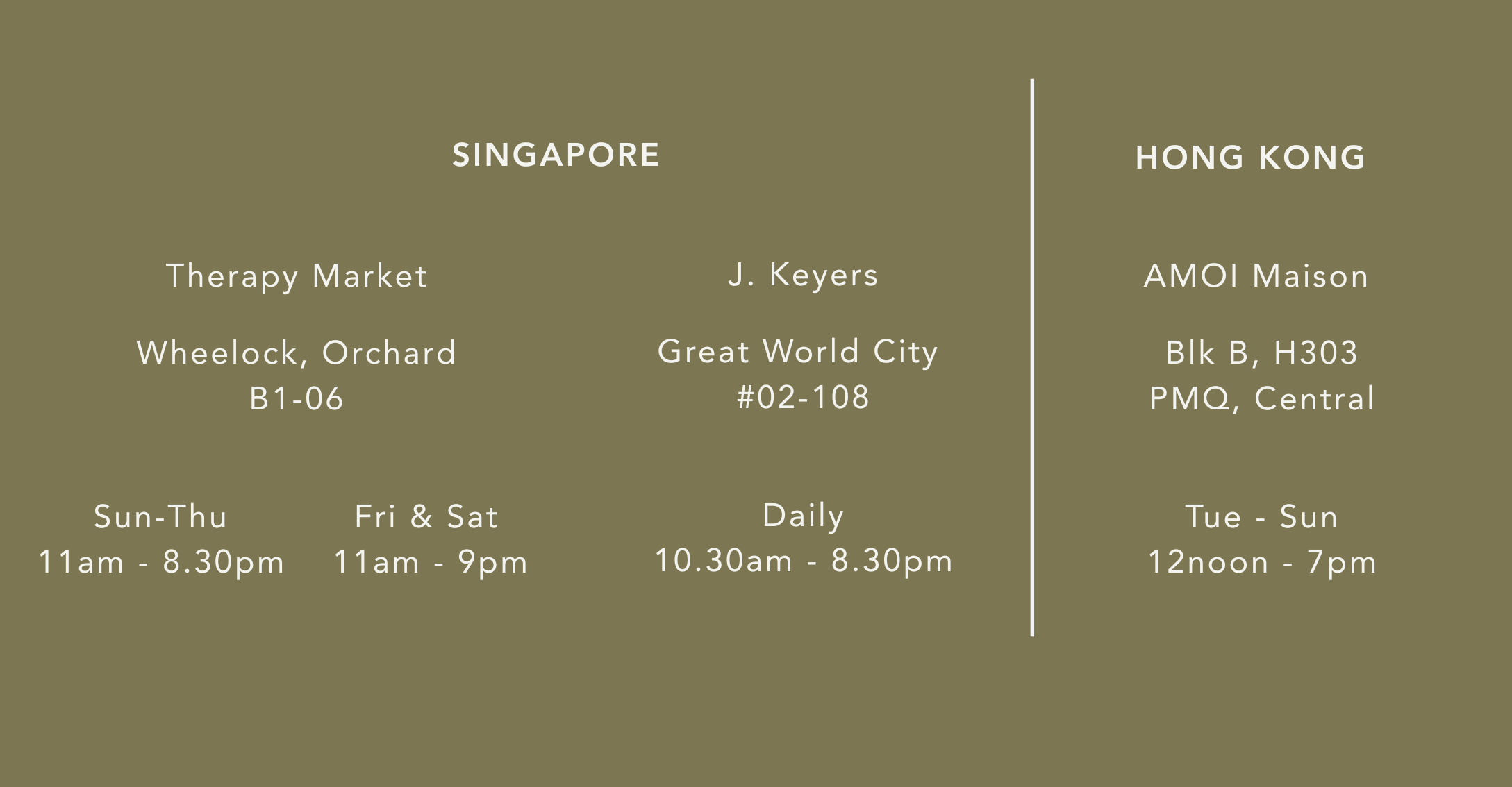 Stockists: #02-108, GWC | B1-06, Wheelock