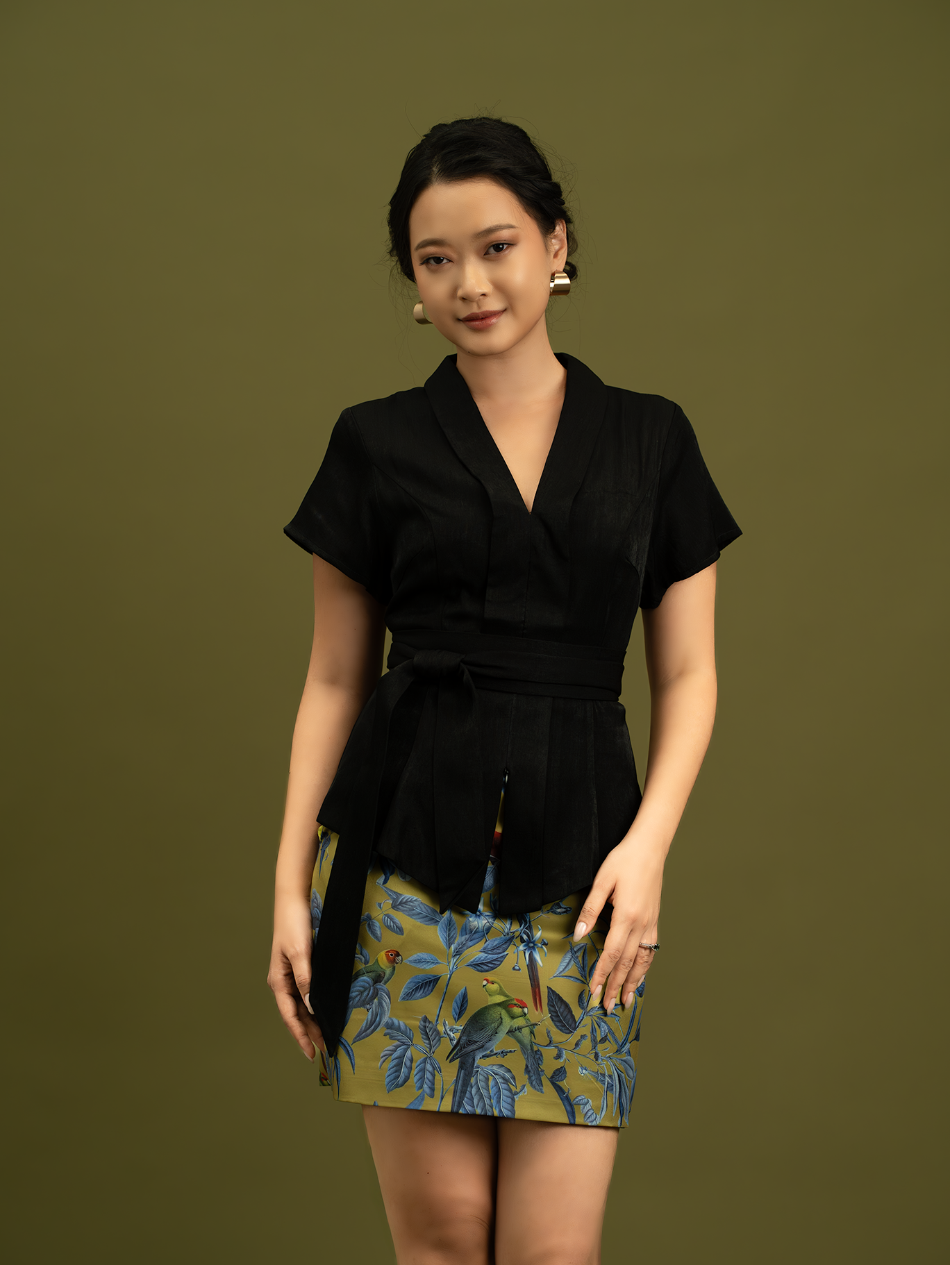 The Li-Po top a tribute to Princess Li Po, the heart of Peranakan heritage. Designed for both elegance and ease, this fitted top features thoughtful allowances for movement, a reversible sash for versatile styling, and a graceful folded neckline that flows seamlessly from collar to hem. A timeless blend of tradition and comfort.